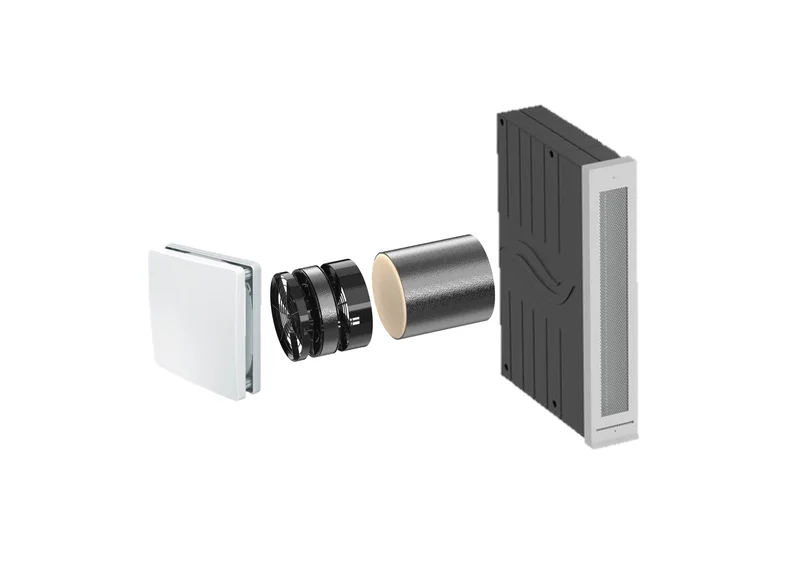 Des Weiteren ist es möglich, durch zusätzliche Schallschutzmaßnahmen den Eigen- und Durchgangsschall der dezentralen Kompaktlüftung weiter zu senken. Beim Einbau minimieren Wandeinbaublöcke und spezielle Wandeinbausysteme Kosten und Fehler.