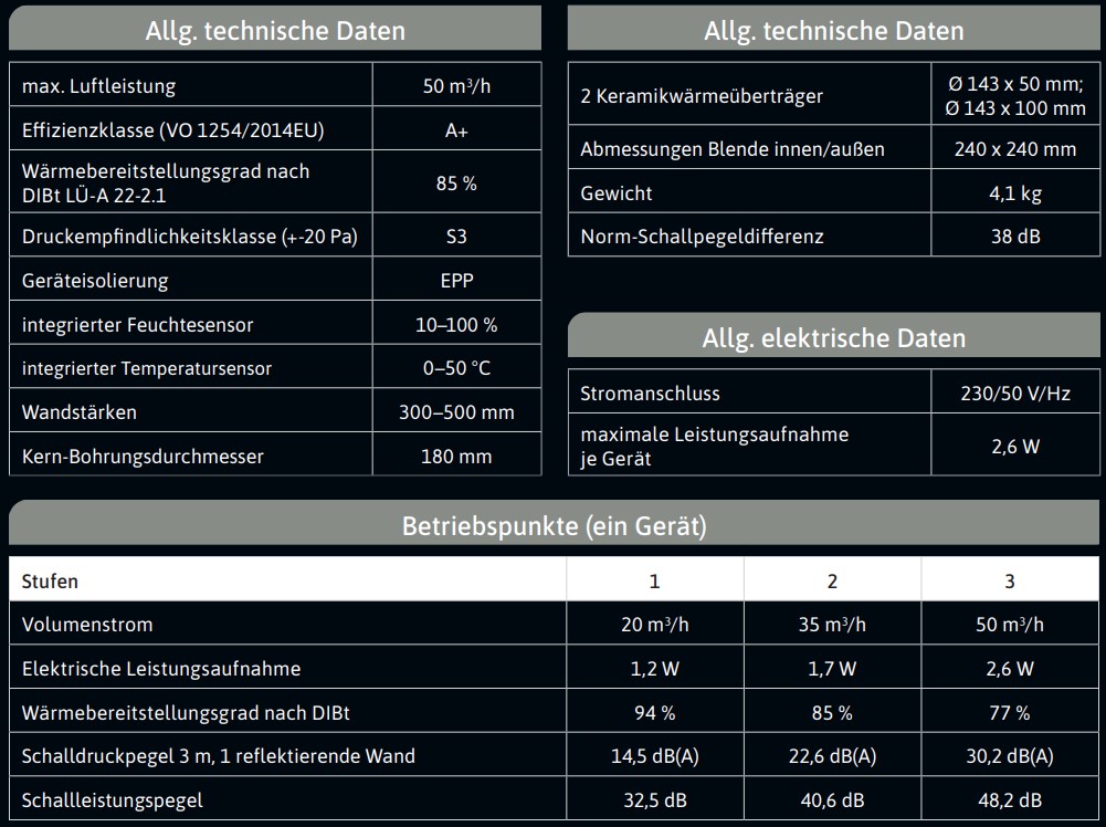 Innenblende in verschiedenen Farben mit StellmotorInnenblende mit geringem Wandabstand, streich- und tapezierbarIntegrierter Motor zum dichten Verschluss der BlendeHochwertiger Kunststoff, UV-stabilGröße der Blende 275 x 275 mm, Aluminium NachbildungSEV Energie-Effizienzklasse ADIBt zugelassenIsolierende Kartusche mit Filter, Keramikblöcken und VentilatorLeichtes Reinigen aller KomponentenSignalübertragung per Loxone BUS-KabelBedienung mit der Loxone App in Verbindung mit einem Loxone MiniserverMade in Germany