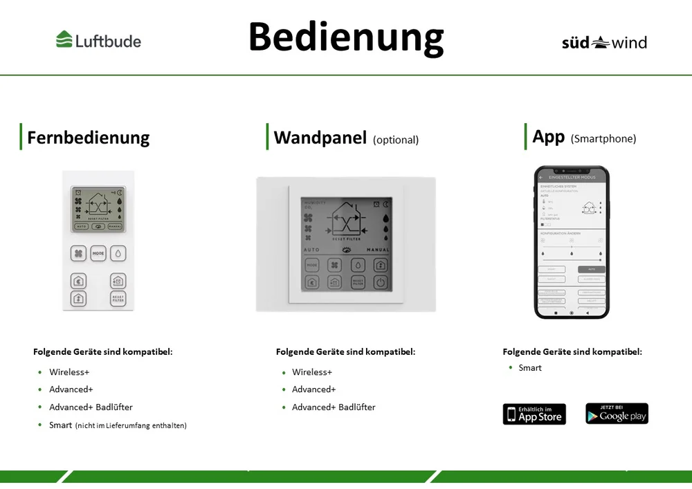Südwind Fernbedienung SW10030 - Optimale Steuerung für Ambientika GeräteErleben Sie mühelose Kontrolle über Ihre Lüftungsgeräte mit der Südwind SW10030 Fernbedienung – für Komfort und Effizienz im Smart Home.Die Südwind Fernbedienung SW10030 ist die ideale Ersatz- oder Ergänzungssteuerung für Ihre Ambientika Lüftungsgeräte. Als universelles Komplettset bietet sie eine intuitive Bedienung und wird inklusive praktischer Wandhalterung geliefert. Perfekt, um die Kontrolle über Ihr Raumklima zu zentralisieren und sogar in Ihr Smart Home System wie Home Assistant zu integrieren.Ihre Vorteile im Überblick:Universelle Kompatibilität: Passt zu allen Ambientika Geräten von Südwind und vielen spezifischen Modellen.Einfache Installation: Kommt als Komplettset mit praktischer Wandhalterung (ausgenommen SOLO+ und SMART).Hohe Sicherheit: Der integrierte Mieterschutz verhindert ungewollte Änderungen der Einstellungen.Smart Home Ready: Problemlos in Systeme wie Home Assistant integrierbar für erweiterte Automatisierung.Langlebigkeit: Eine zuverlässige Ersatzfernbedienung für dauerhaften Komfort.Universelle SteuerungDiese Fernbedienung ist speziell für alle Ambientika Lüftungsgeräte von Südwind entwickelt und gewährleistet eine breite Kompatibilität. Sie ersetzt verlorene oder defekte Fernbedienungen nahtlos und ist auch als zusätzliche Steuereinheit nutzbar.Sie profitieren von einer unkomplizierten Bedienung und der Gewissheit, dass Ihre Lüftungsanlage immer optimal gesteuert werden kann, ohne Kompatibilitätsprobleme.Mieterschutz-FunktionEin einzigartiges Merkmal ist der aktivierbare Mieterschutz, der durch fünfmaliges Drücken der Aus-Taste aktiviert oder deaktiviert wird. Dies verhindert, dass unbefugte Nutzer oder Mieter Einstellungen ungewollt verändern.Bietet Ihnen die volle Kontrolle über die Geräteeinstellungen und schützt vor unerwünschten Anpassungen, ideal für Mietobjekte oder öffentliche Bereiche.Smart Home IntegrationDie Fernbedienung lässt sich in führende Smart Home Systeme wie Home Assistant integrieren, was eine zentrale Steuerung und Automatisierung ermöglicht.Erhöhen Sie Ihren Wohnkomfort durch die Vernetzung Ihrer Lüftungsanlage mit anderen smarten Geräten und automatisieren Sie Abläufe für ein optimales Raumklima.Technische SpezifikationenParameterWertHinweisModellnummerSW10030Universelle FernbedienungKompatible ModelleADVANCED B+, ADVANCED+, WIRELESS+, SMART, OFFICE, alle Ambientika GeräteBreite KompatibilitätEinsatzbereiche & AnwendungsszenarienDie Südwind Fernbedienung SW10030 ist ideal als direkter Ersatz für eine verlorene oder defekte Originalfernbedienung Ihrer Ambientika Lüftungsanlage. Sie eignet sich hervorragend zur zentralen Steuerung mehrerer Lüftungsgeräte in Wohn- und Büroräumen. Durch die Smart Home Integration ist sie auch perfekt für Nutzer, die ihre Haustechnik intelligent vernetzen und automatisieren möchten.Hersteller & QualitätSüdwind steht für Qualität und Zuverlässigkeit im Bereich der Lüftungstechnik. Diese Fernbedienung ist ein Originalzubehör des Herstellers, das die hohen Standards der Ambientika Geräte optimal ergänzt und eine langfristige, störungsfreie Funktion gewährleistet.Optimieren Sie jetzt die Steuerung Ihrer Ambientika Lüftung mit der originalen Südwind Fernbedienung SW10030!Profitieren Sie von einfachem Komfort und voller Kontrolle über Ihr Raumklima. Bei Fragen stehen wir Ihnen gerne beratend zur Seite.
