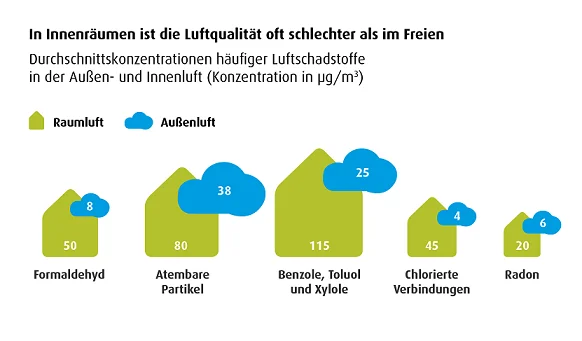 In Innenräumen ist die Luftqualität häufig sogar 10x schlechter als die Luft im Freien.