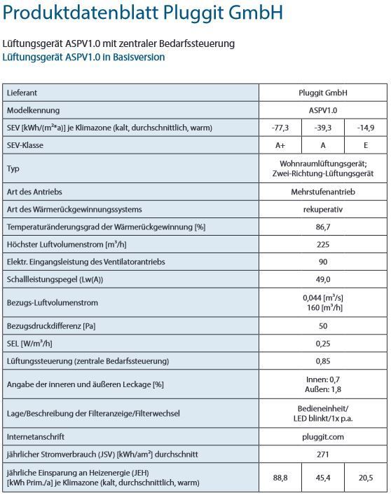 • Die zentrale Lüftungsanlage besitzt eine hohe Wärmerückgewinnung, einen Sommerbypass sowie integrierte Zu- und Abluftfilter.
