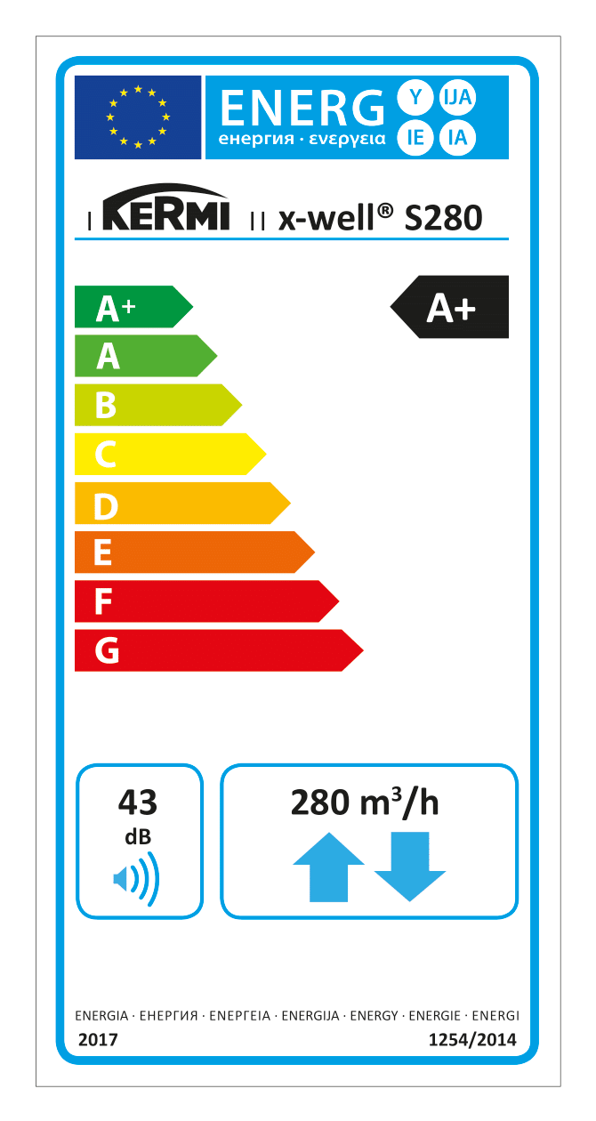 ~175 m2 | 92,4 % / 84,8 % | 43 dB(A) | A+ / A |