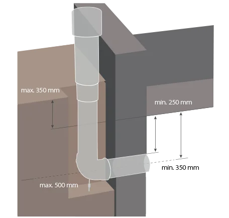 Mit einer maximalen Einbautiefe von 350 mm zwischen der Kellerdecke und der Oberkante des Erdreichs bietet die Vento KD 160 eine flexible Installationsoption für verschiedene Kellerstrukturen.
