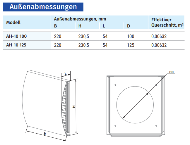 Blauberg Ventilatoren Radialventilator BL Box-I EC 100x50 - Effiziente Luftzirkulation Maximieren Sie Ihre Luftqualität mit dem Blauberg Ventilatoren Radialventilator BL Box-I EC 100x50 – für ein gesundes Raumklima in Ihrem Zuhause. Der Blauberg Ventilatoren Radialventilator BL Box-I EC 100x50 wurde entwickelt, um eine zuverlässige und effiziente Luftzirkulation in Ihrem Zuhause oder Büro zu gewährleisten. Er eignet sich hervorragend für den Einsatz in Luftkanälen und sorgt für eine gleichmäßige Verteilung der Luft. Durch die Verwendung der EC-Technologie, bietet dieser Radialventilator hohe Leistung bei niedrigem Energieverbrauch und leisem Betrieb. Ihre Vorteile im Überblick: Hohe Effizienz: Spart Energie und reduziert Betriebskosten durch EC-Technologie. Leiser Betrieb: Angenehme Raumluft ohne störende Geräusche. Einfache Installation: Unkomplizierte Montage in Luftkanälen. Zuverlässige Leistung: Stabile und konstante Luftzirkulation. Langlebigkeit: Hochwertige Materialien und Verarbeitung für eine lange Lebensdauer. Effiziente Luftzirkulation Der Blauberg Ventilatoren Radialventilator BL Box-I EC 100x50 ist ideal für den Einsatz in Wohnräumen, Büros und gewerblichen Gebäuden. Durch die spezielle Radial-Bauweise wird die Luft effizient durch den Kanal befördert. Die EC-Motorentechnologie sorgt für einen geringen Energieverbrauch und eine lange Lebensdauer, wodurch die Luftqualität verbessert und ein angenehmes Raumklima geschaffen wird. Leistungsstarker und leiser Betrieb Der Blauberg Ventilatoren Radialventilator überzeugt durch seine hohe Leistung und den leisen Betrieb. Die spezielle Konstruktion minimiert Geräuschemissionen. Ob im Schlafzimmer oder im Arbeitsbereich, dieser Ventilator sorgt für ein angenehmes Raumklima, ohne die Ruhe zu stören. Erleben Sie die perfekte Balance zwischen Leistung und Geräuschreduzierung. Technische Spezifikationen Parameter Wert Modell BL Box-I EC 100x50 Herstellernummer 8014192 EAN 4058448014192 Spannung 230 V Frequenz 50/60 Hz Leistungsaufnahme 40 W Luftförderleistung 300 m³/h Drehzahl 2500 U/min Schalldruckpegel (3m) 35 dB(A) Anschluss 100 x 50 mm Einsatzbereiche Wohnräume: Verbesserung der Luftqualität und Vermeidung von Feuchtigkeit in Badezimmern und Küchen. Büros: Sicherstellung einer angenehmen Arbeitsumgebung und Reduzierung von Schadstoffkonzentrationen. Gewerbliche Gebäude: Zuverlässige Belüftung von Lagerräumen und Produktionshallen. Hersteller & Qualität Blauberg Ventilatoren ist ein renommierter Hersteller von Lüftungstechnik, der für hochwertige Produkte und modernste Technologie steht. Die Ventilatoren werden nach strengen Qualitätsstandards gefertigt und geprüft, um eine lange Lebensdauer und zuverlässige Leistung zu gewährleisten. Entscheiden Sie sich jetzt für den Blauberg Ventilatoren Radialventilator BL Box-I EC 100x50 und erleben Sie die Vorteile einer optimalen Luftzirkulation in Ihren Räumen. Kontaktieren Sie uns für eine individuelle Beratung oder bestellen Sie noch heute und profitieren Sie von einem gesunden und angenehmen Raumklima!