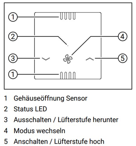 | Urlaubs-Modus | Reduzierte Lüftungsstufe und niedrigster Stromverbrauch. Optimale Belüftung leerer Räume |