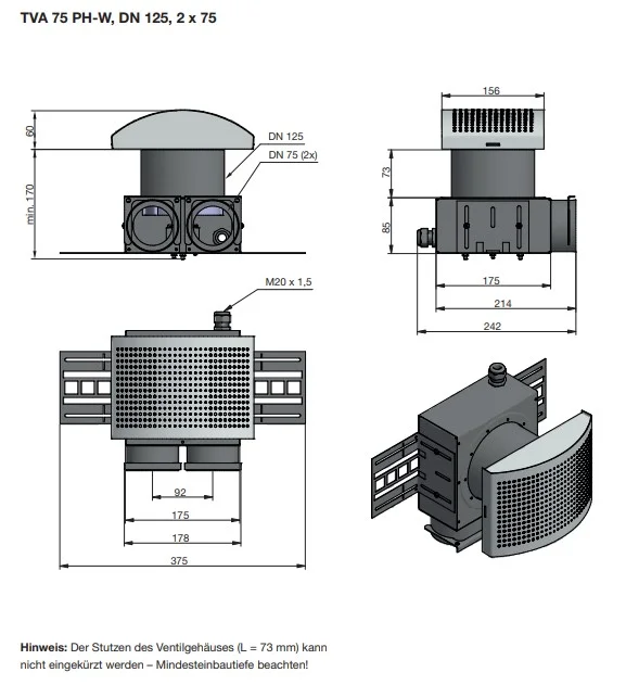 Luftdurchlassgehäuse TVA 75 PH-D/W - Effiziente Luftnachheizung für Ihr Zuhause